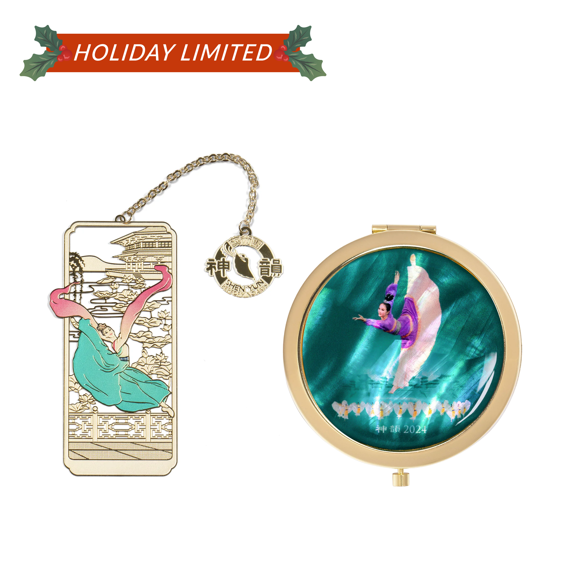 Brighten your day with a touch of classical elegance. This gift bundle pairs the 2024 Tour Compact Mirror—adorned with luminous mother-of-pearl and a dancing celestial maiden—with our Tang-inspired gold-plated bookmark featuring flowing water sleeves. Together, they celebrate beauty, grace, and renewal, making this the perfect meaningful gift for someone special.