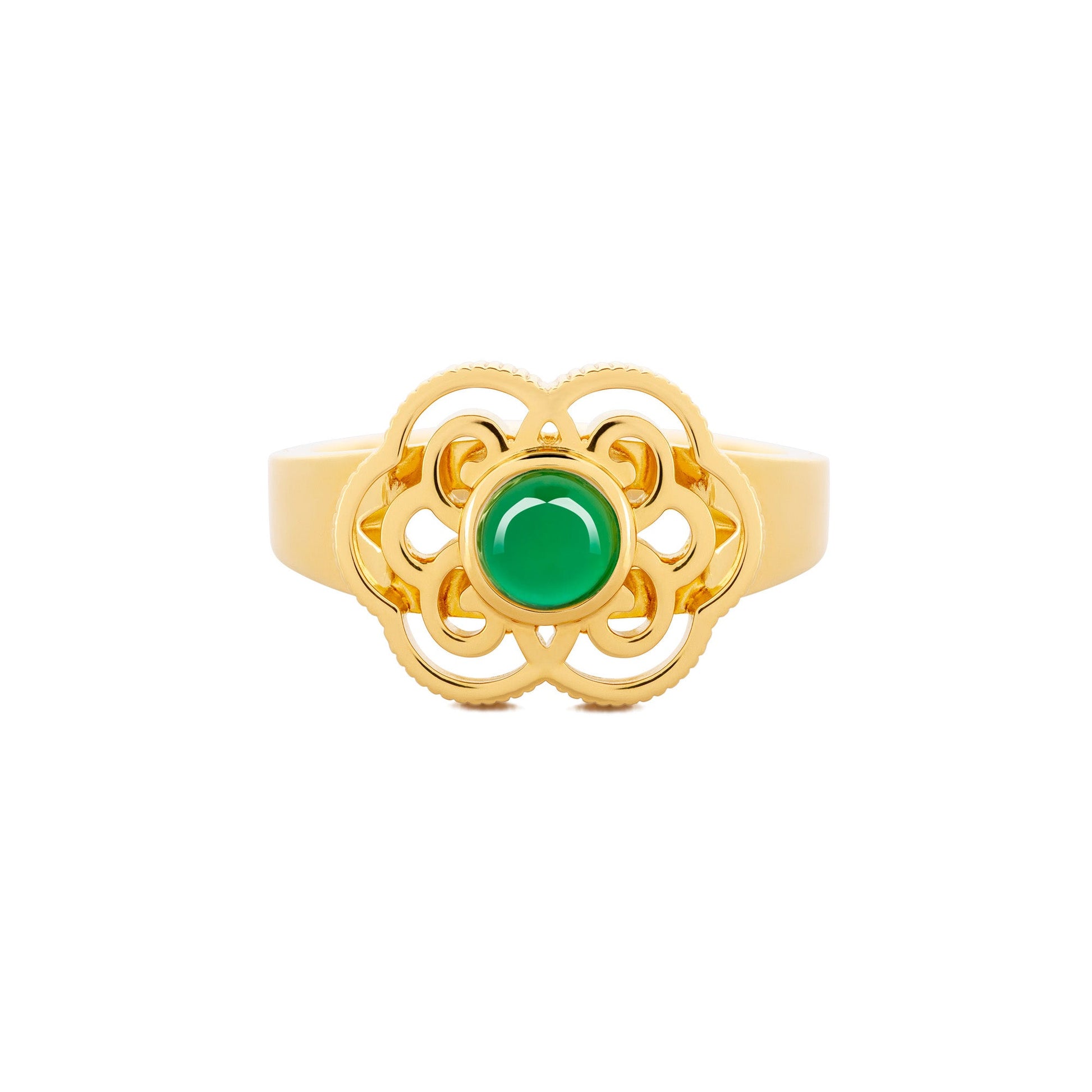 Blissful Ruyi Ring with Green Agate size 6/7