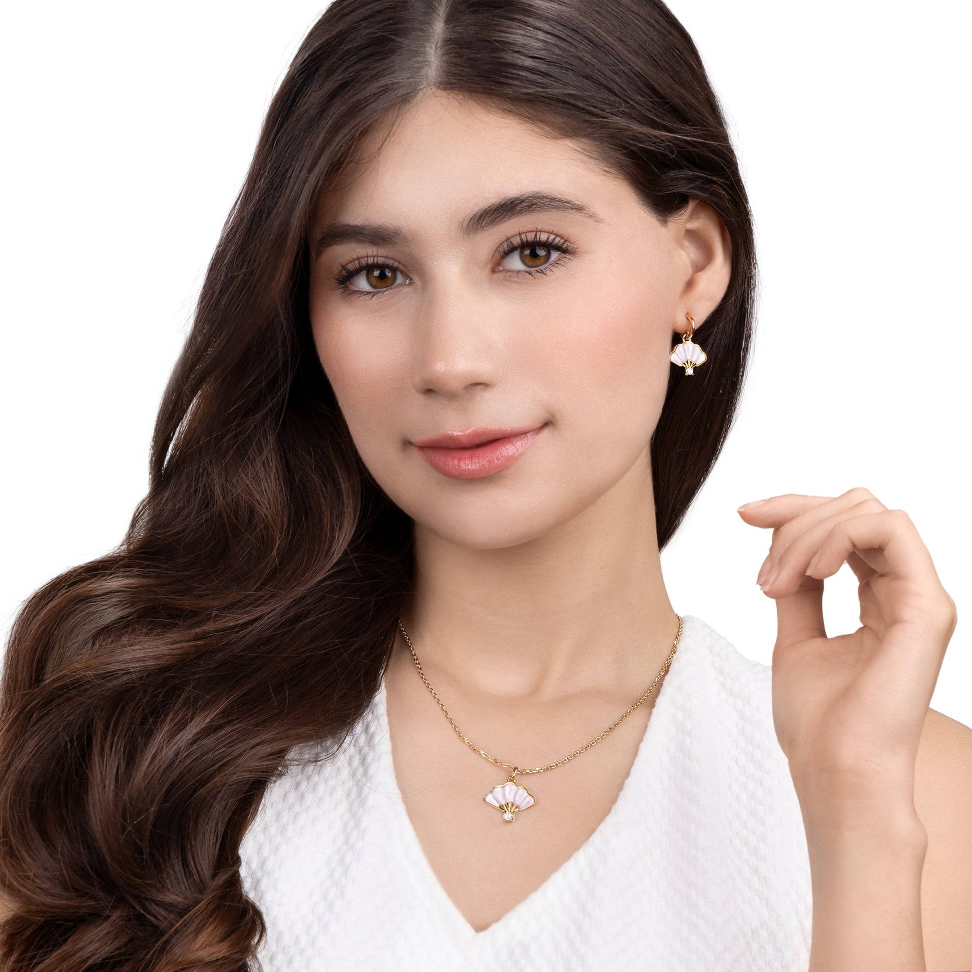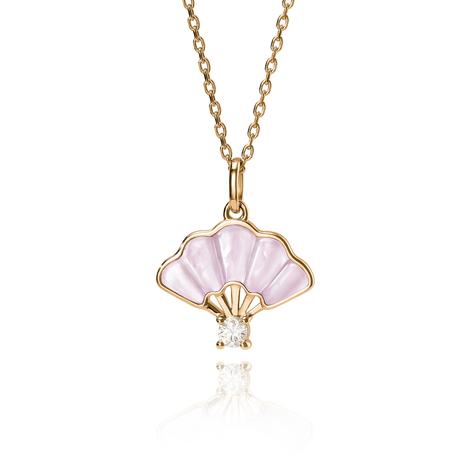 Floral Fan Necklace Gold with pink Mother of Pearl