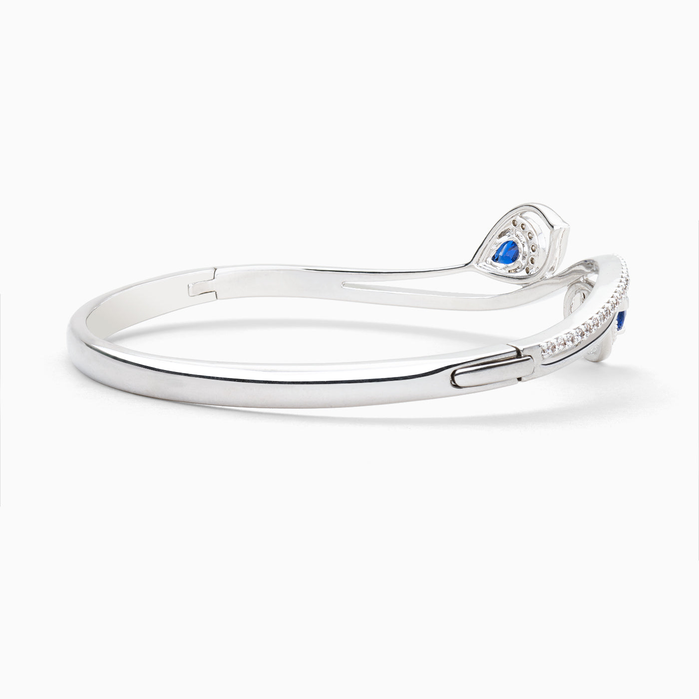 • Rhodium plated brass • 73 Cubic zirconia • Inner diameter: 1.93” x 2.32” • One size • Hinged bangle bracelet Made in Thailand