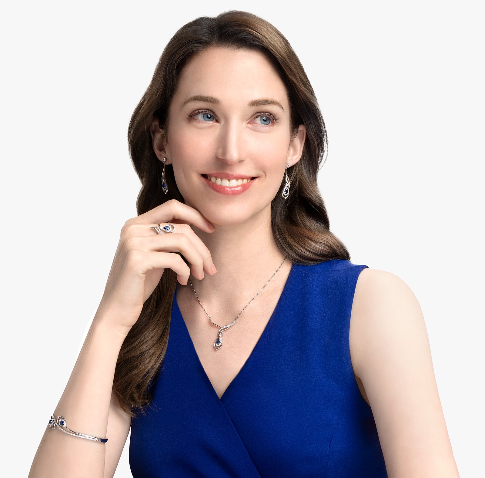 靈感來自神韻舞曲寶藍鳯舞,這些迷人的耳環飾有一對奢華的藍色藍寶石*,代表著天上鳳凰的羽毛。石雕上雕飾繁複的翼狀藝術品,盡顯鳳凰仙子的雍容華貴,為人間帶來天地之美與安寧。這些是我們相同設計項鍊的完美搭配。