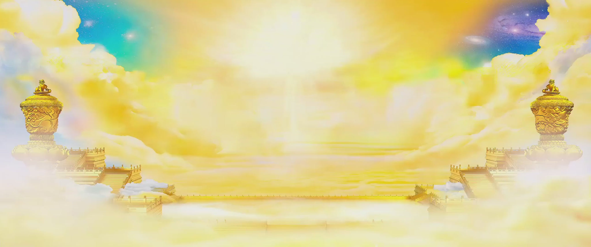 The curtain rises on a resplendent and lofty paradise. Celestial beings of every kind have gathered here, waiting. On a golden chariot the Creator appears, addressing them in a resounding voice: "Follow me to the Earth to save all lives." Throughout the cosmos, brave divinities answer the call as the Creator leads them on a sacred mission to the human world. There, they assume various roles, from emperor to court ladies to soldiers, forging a glorious culture and setting the stage for the grand play of history.